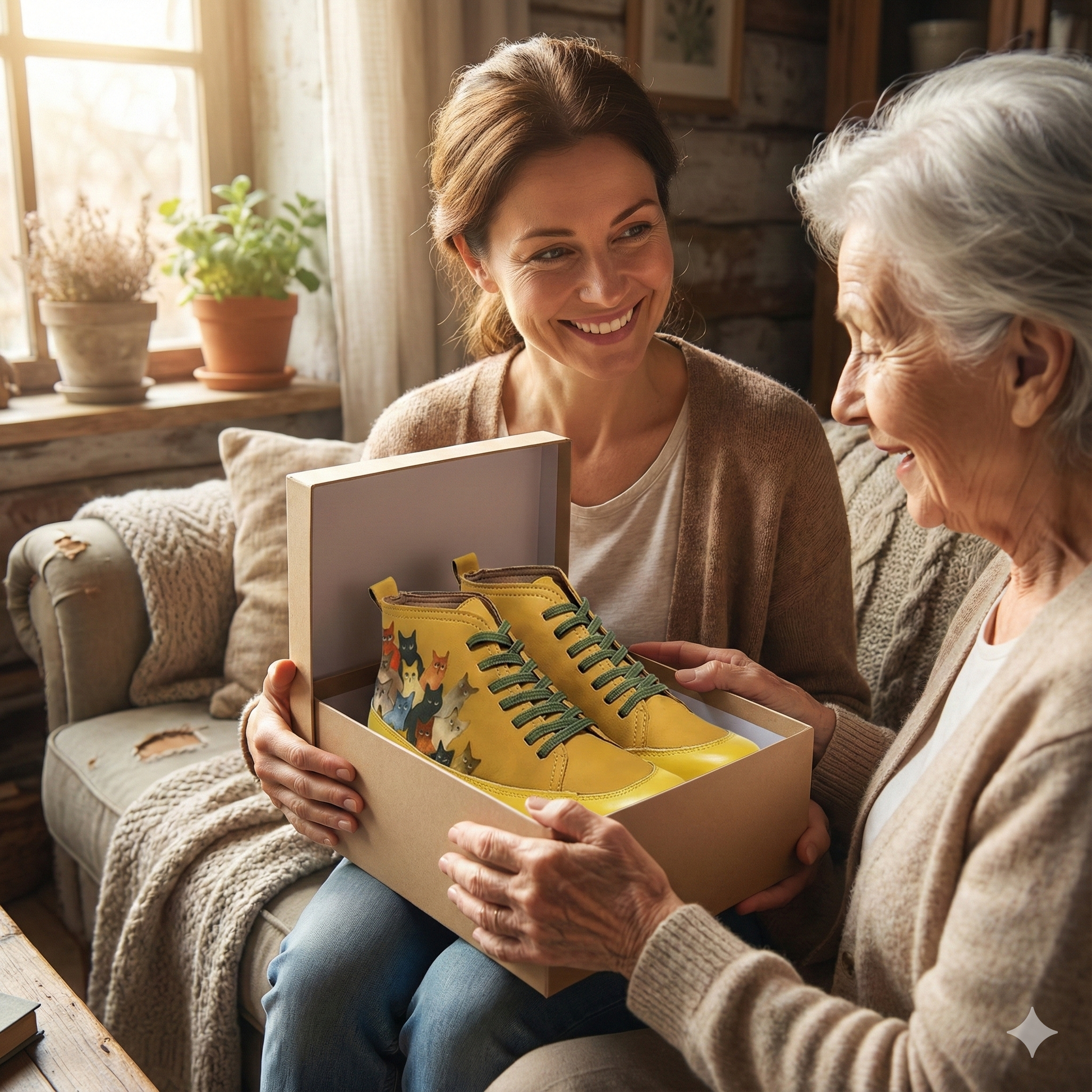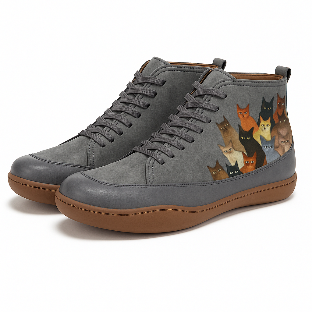 Wenn du Katzen liebst und Schuhe suchst, die Stil, Komfort und Persönlichkeit vereinen, sind die Funny Boots genau das Richtige für dich! Perfekt für den Alltag, lassen sie sich mühelos mit lässigen Looks kombinieren und verleihen mit ihrem exklusiven Katzen-Print eine besondere Note.
