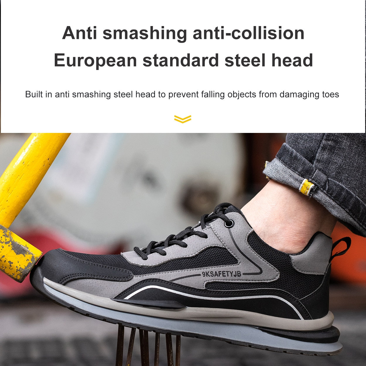 Our 9K Safety Sneakers are made from premium 100% Vegan Suede Leather and durable Mesh. The outsole is crafted from highly durable, non-slip PU, ensuring safety and stability while walking or performing daily activities.