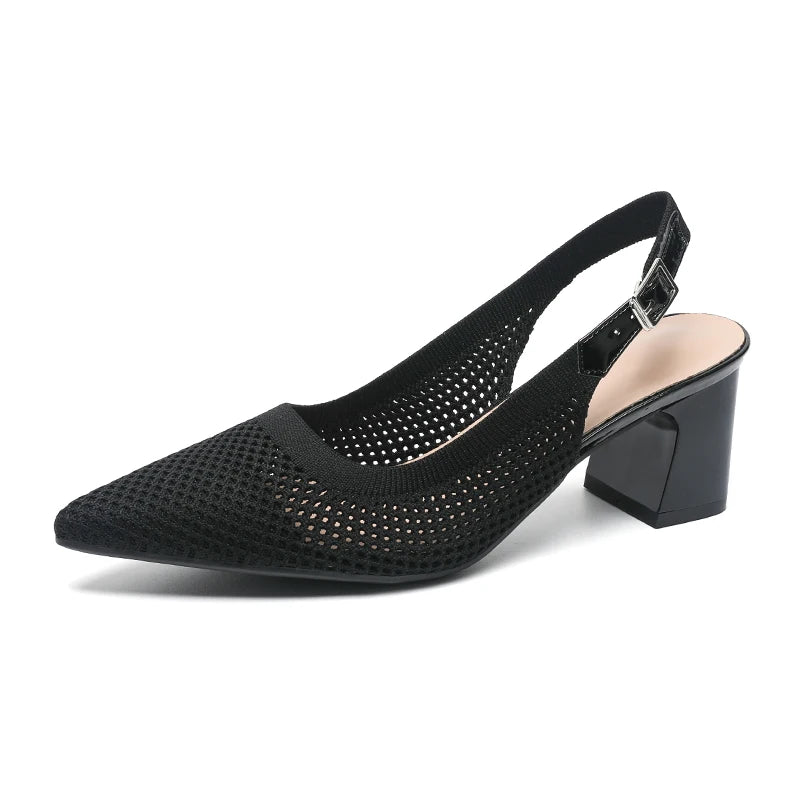 Embrace the bold silhouette of these breathable knit pumps, now reimagined with a slingback cut for a flattering, airy fit. Whether you're conquering the boardroom or strolling through the city at sunset, they carry you with effortless confidence and poise.