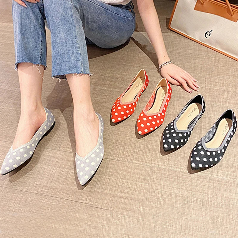 The Dotella Paris Polka Knit Flats (heel 1 cm) Special Collection ✨